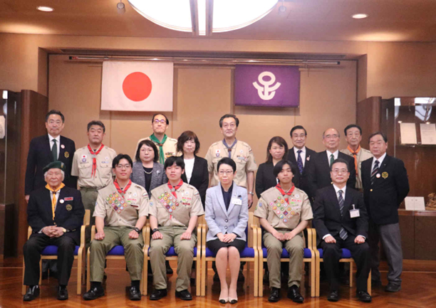 足立区ボーイスカウト・ガールスカウト協議会主催で、足立第5団の富士スカウト章受章スカウト3名が近藤やよい足立区長にお会いし、富士スカウト章受章の報告をしました。